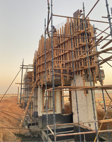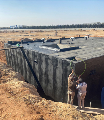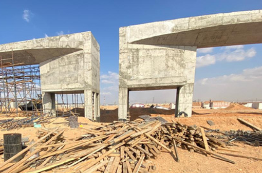 نطاق الأعمال: إنشاء 10 مجموعات على مساحة 10 أفدنة لكل مجموعة، تشمل مبانٍ إدارية وإنتاجية، أبراج Falcon Eye بارتفاع 40 مترًا مع ألواح ألمنيوم، خزانات مياه بسعة 8,000 متر مكعب لكل خزان، و10 بوابات ضخمة بتصميم مميز تحت